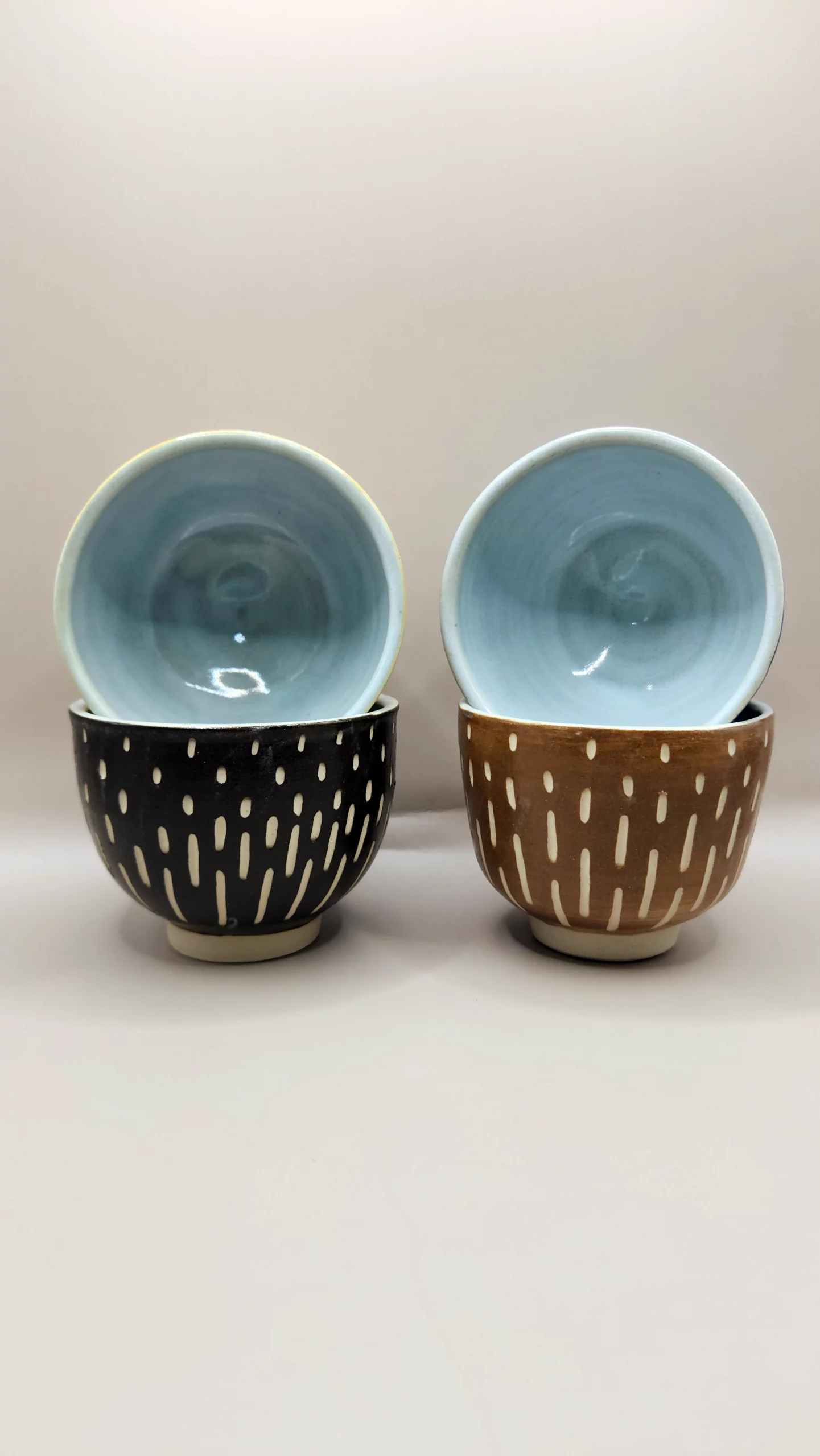 Ici, j’ai tourné des bols en grès blanc lisse, afin de faire ressortir le contraste entre la couleur de l’engobe et la terre. - Séchage à consistance cuir