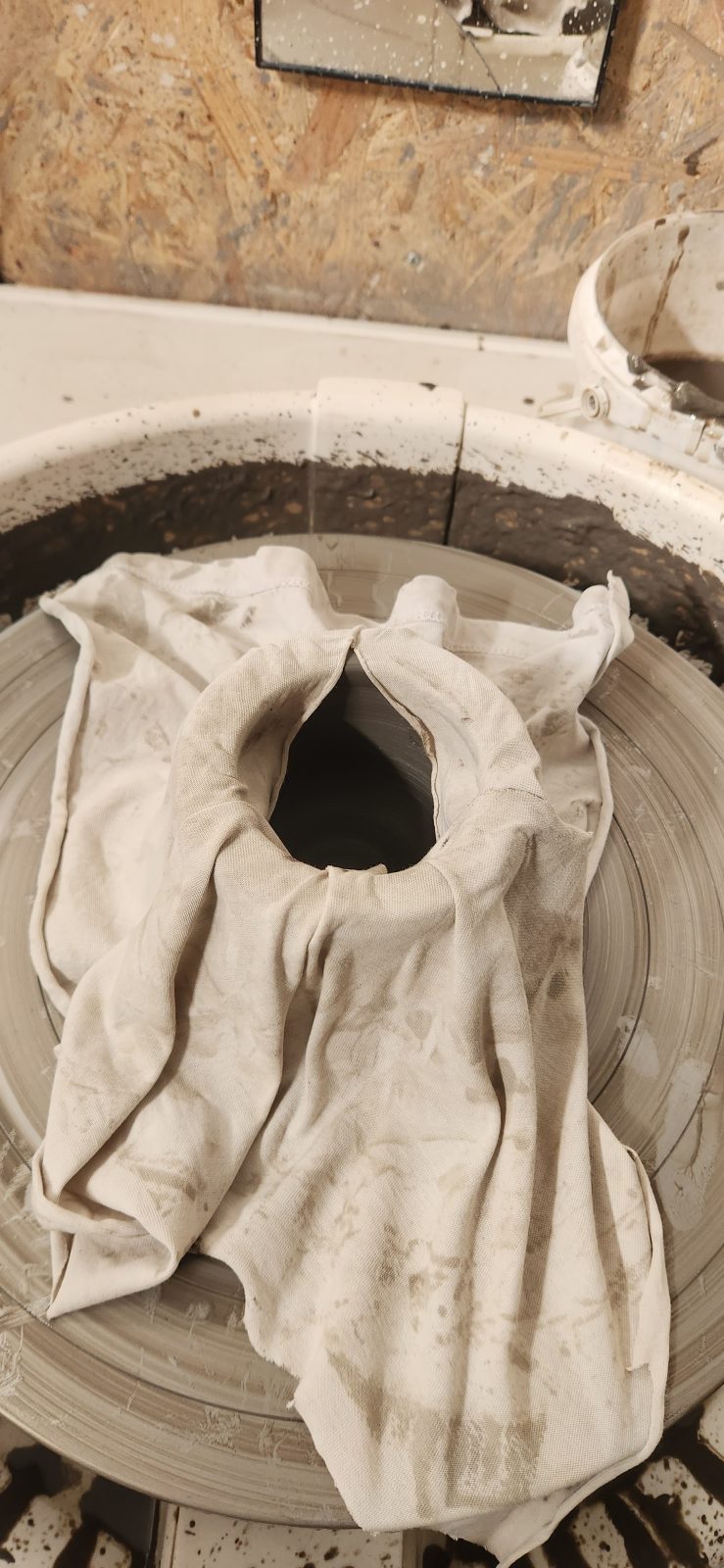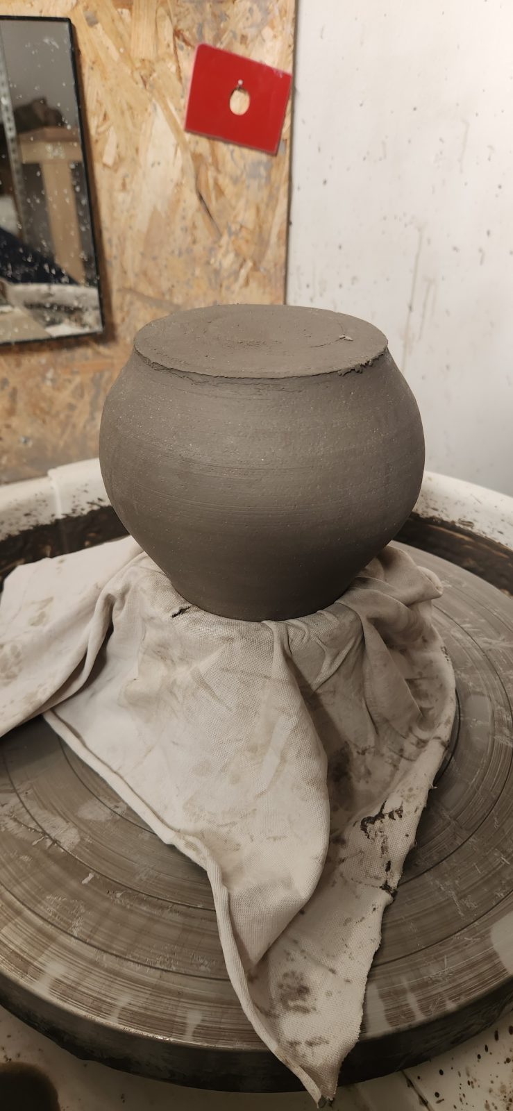 Un mandrin de potier, c’est un support en argile que l’on tourne soi-même, spécialement conçu pour maintenir une pièce délicate pendant le tournassage. Il permet notamment de caler un vase à l’envers sans abîmer son col, tout en offrant une bonne stabilité pour tournasser le pied.