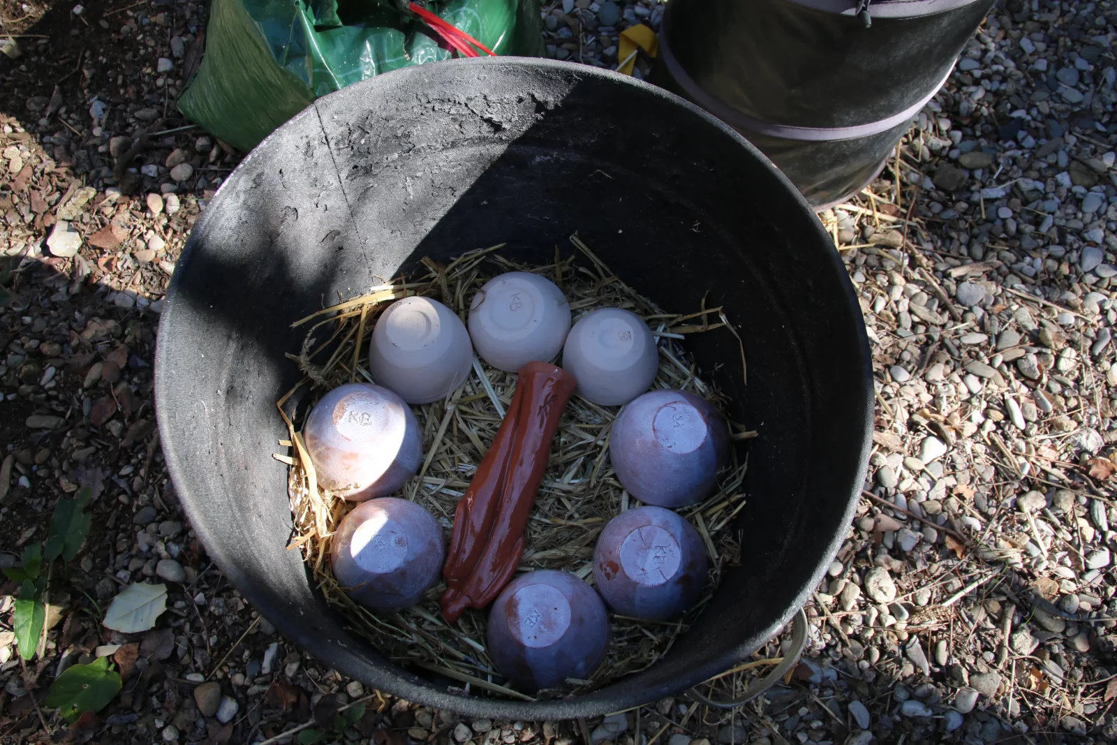L’enfumage est une méthode utilisée en céramique pour donner aux bols en faïence des effets de surface uniques. Cette technique consiste à exposer les pièces à la fumée et aux flammes dans un contenant spécifique, comme un tonneau de jardin, afin d’obtenir des teintes variées et naturelles.