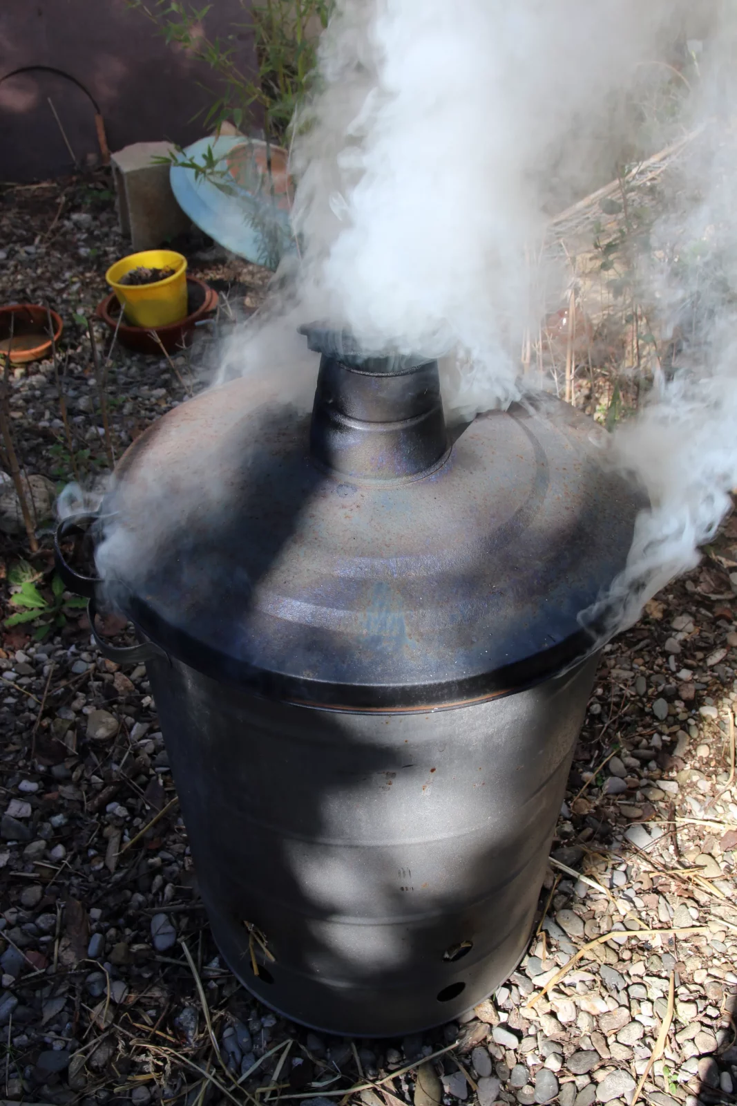3. Recouvrez les bols avec une nouvelle couche de paille et de copeaux de bois pour intensifier l’effet de la fumée.